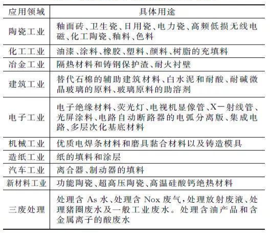 我國硅灰石的消費結(jié)構(gòu):以釉面磚、陶瓷坯料為主,約占50%;冶金保護(hù)渣及電焊條約占20%;油漆、涂料約占10%;塑料、橡膠、造紙?zhí)盍霞s占10%;建筑材料、石棉替代及其他應(yīng)用約占10%。