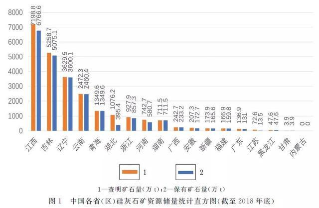硅灰石作為一種新型工業(yè)礦物原料,主要產(chǎn)于酸性侵入巖與石灰?guī)r的接觸變質(zhì)帶,為構(gòu)成矽卡巖的主要礦物成分,硅灰石在我國分布情況,北起黑龍江,南到海南省,以及新疆都有礦床分布。19個省、自治區(qū)發(fā)現(xiàn)硅灰石礦產(chǎn)地86處(其中超大型8處、大型13處、中型24處、小型32處、礦點9處)。在77處礦床中,查明硅灰石礦石量2.44億t,保有硅灰石礦石量2.27億t。保有儲量最多的是吉林省梨樹縣霍家店,占全國總保有礦石儲量的40%;其余依次為云南、江西、青海、遼寧4省,共占全國保有礦石儲量的49%;浙江、湖南、安徽、內(nèi)蒙古、廣東5省區(qū)共占全國保有儲量的10%;江蘇、廣西、湖北、黑龍江4省區(qū)共占全國保有礦石儲量的1%。