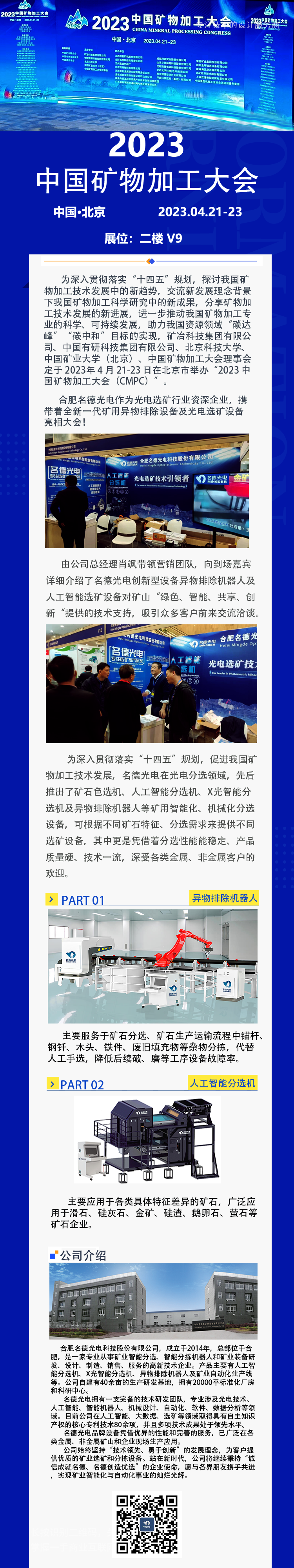 名德光電 | 2023中國(guó)礦物加工大會(huì)(北京)V9展位與你相約!