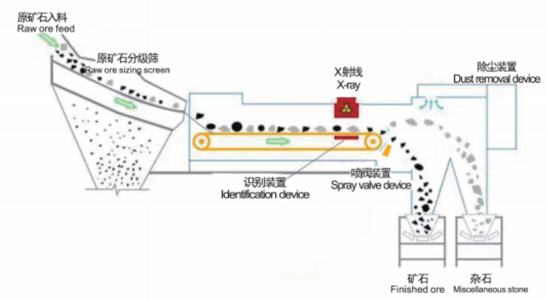 名德光電X光智能分選機(jī)區(qū)別與傳統(tǒng)選礦設(shè)備,采用X射線透射礦石,根據(jù)不同物質(zhì)衰減特異性,識(shí)別礦石內(nèi)部結(jié)構(gòu),運(yùn)用AI人工智能手段,對(duì)礦石定制化分選,可自學(xué),高度智能化。實(shí)現(xiàn)礦石預(yù)先拋廢、品位富集、降低企業(yè)分選成本,提升經(jīng)濟(jì)效益。