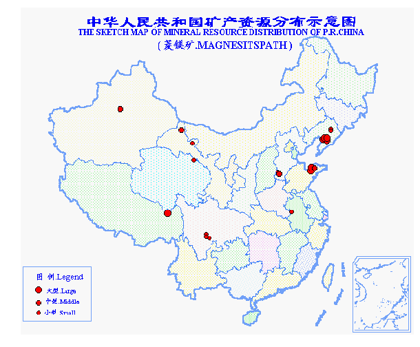 中國是菱鎂礦資源極為豐富的國家,不僅資源量大,而且資源種類齊全。中國菱鎂礦資源分布高度集中,目前我國菱鎂礦的探明資源量主要分布于遼寧、山東、西藏、新疆、甘肅、河北等9個省區(qū)。其中,遼寧的資源儲量最大。遼寧省遼東地區(qū)是我國乃至世界上菱鎂礦資源量最大的地區(qū),占全國菱鎂礦資源量的84%,其礦石品質(zhì)也非常優(yōu)良。遼寧省和山東省的菱鎂礦查明資源量合計占全國的95%,其中遼寧省的查明資源量為35.16億噸,占全國查明資源量的86%,山東的菱鎂礦已查明資源量為3.64億噸,占全國總量的9%。