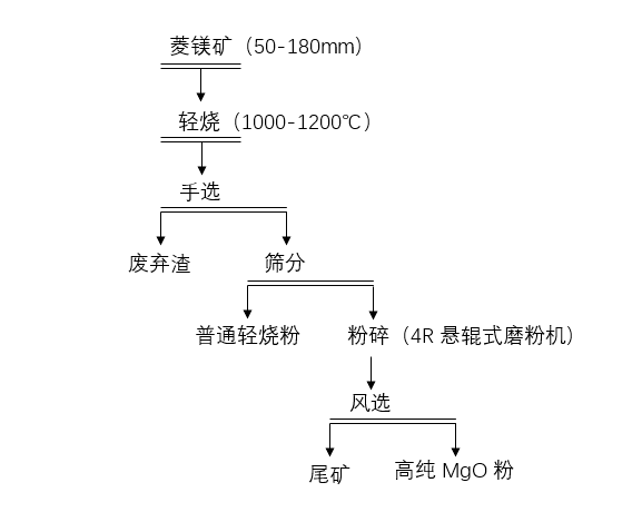 熱選法:是一種利用菱鎂礦輕燒后產(chǎn)生的輕燒氧化鎂與硅酸鹽脈石礦物之間的硬度差異進行選別的方法。通過在800-1000℃條件下煅燒菱鎂礦,分解出礦石中的CO2,形成質(zhì)地疏松的顆粒,與伴生礦物產(chǎn)生密度差和硬度差。利用這種差異,可以將煅燒后的礦石進行破碎、篩分等操作,從而使菱鎂礦富集到細粒礦物中。
