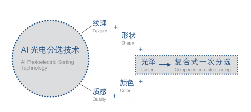 色選機到人工智能分選機發(fā)展就是1到N的進步,由色選機分選只能通過顏色進行分選,到人工智能分選機通過礦石多維特征,如紋理、色澤、形狀、顏色、光澤度等肉眼可見差異化特征的進步,人工智能機都可以進行提取、學習、建模、分選。從而在分選個性化、分選多元化、分選有效率等都有極大的提升。